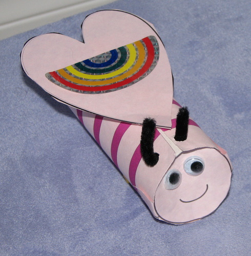 - Glue the heart onto the top of the TP tube as wings.